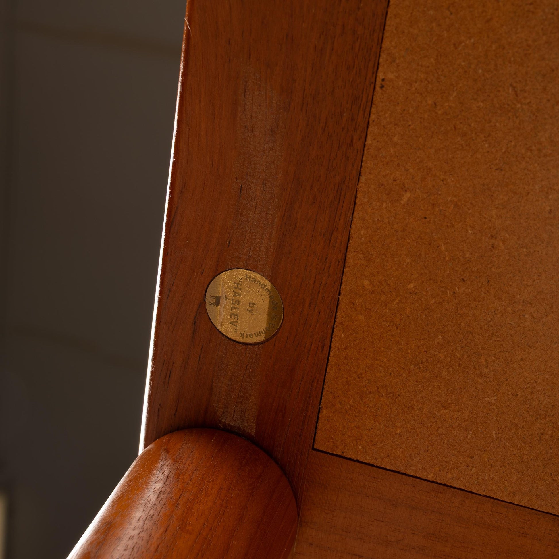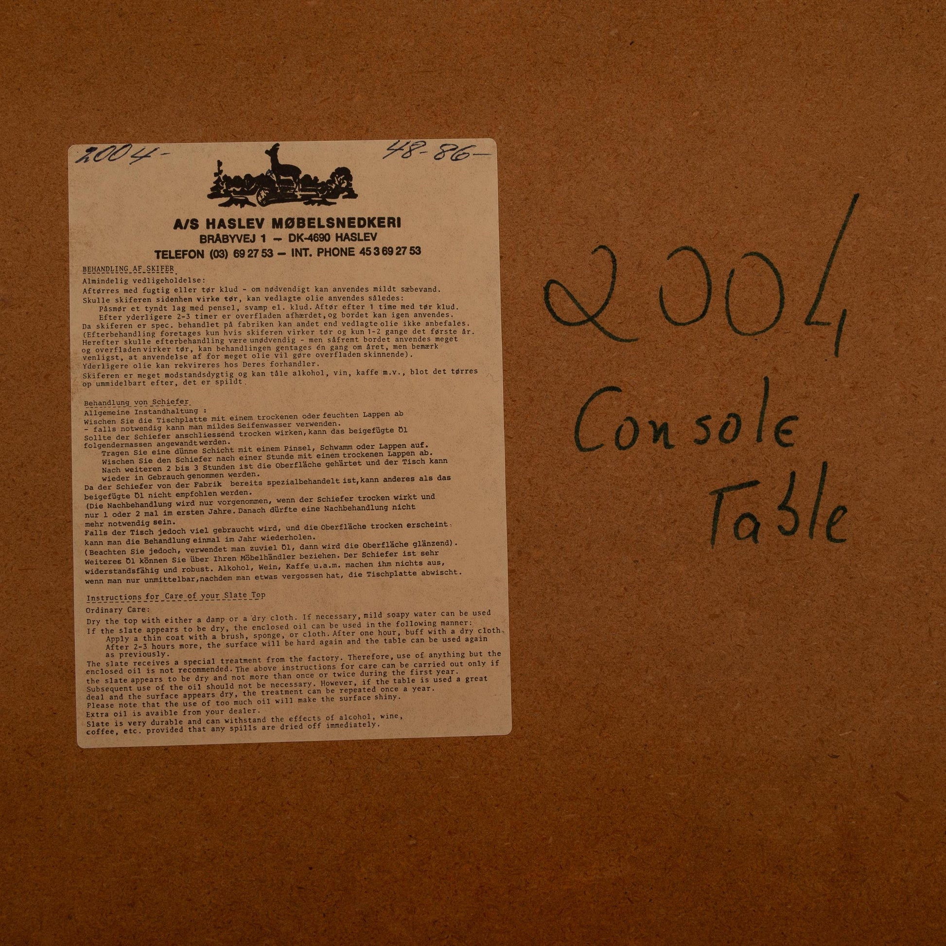 This elegant Haslev teak console table combines clean Scandinavian design with natural materials, making it both functional and timeless. Crafted in Denmark, the table features a solid teak frame with rounded edges and legs, paired with a striking slate tile top that adds rich color and texture.