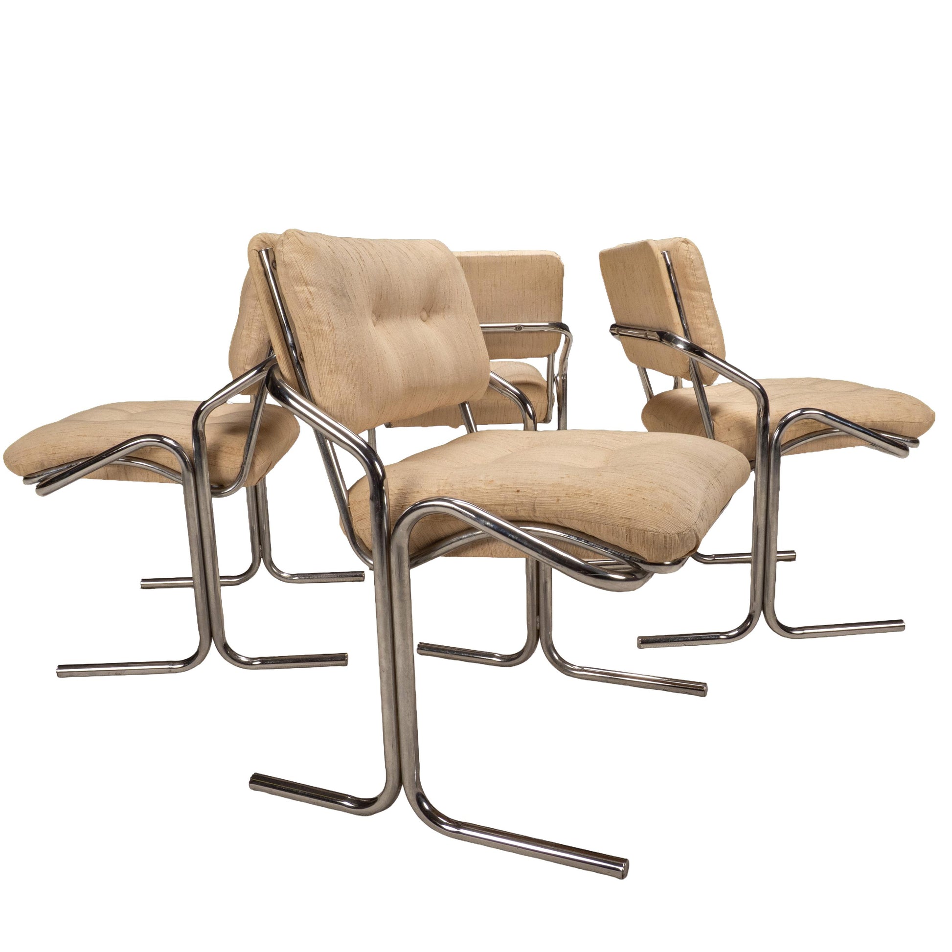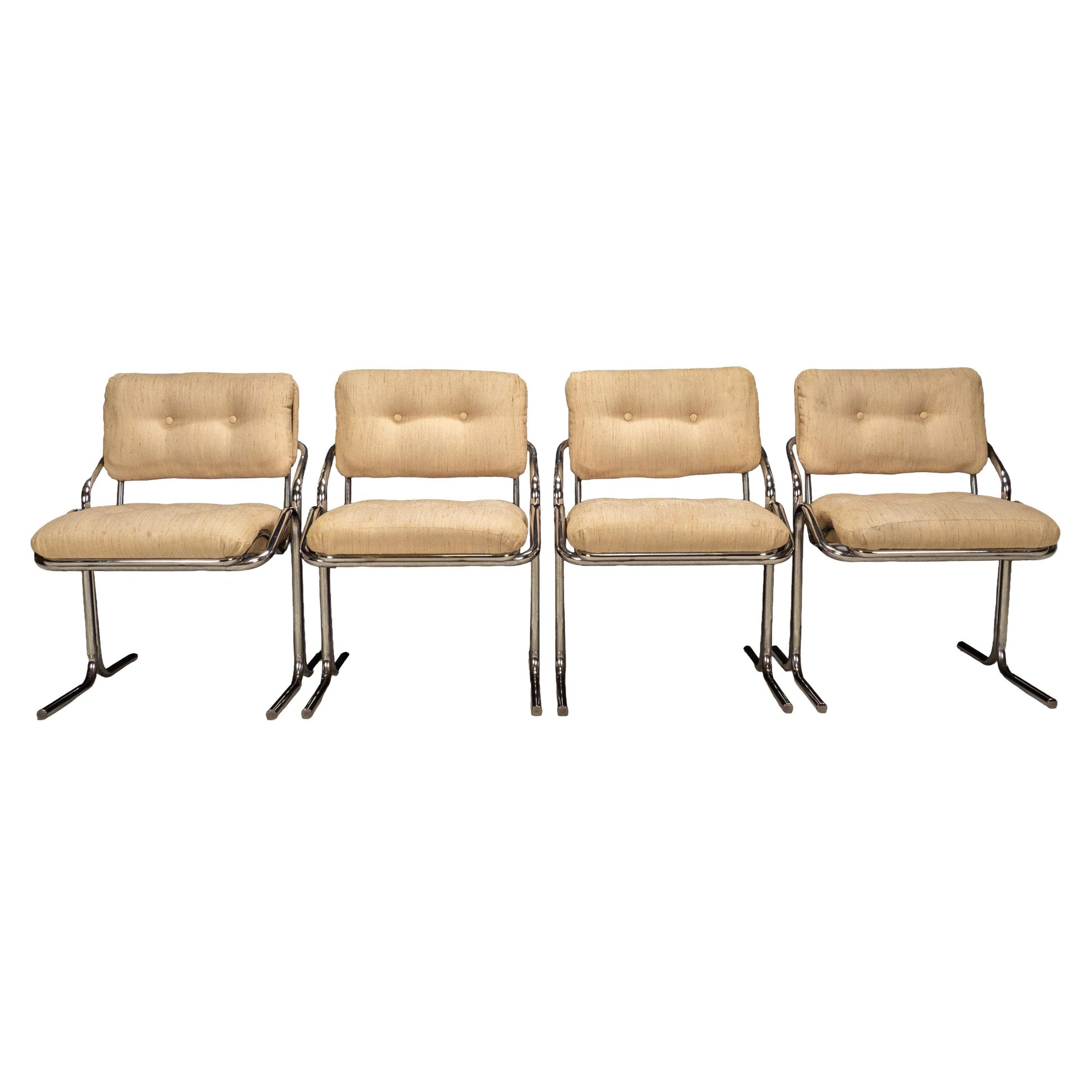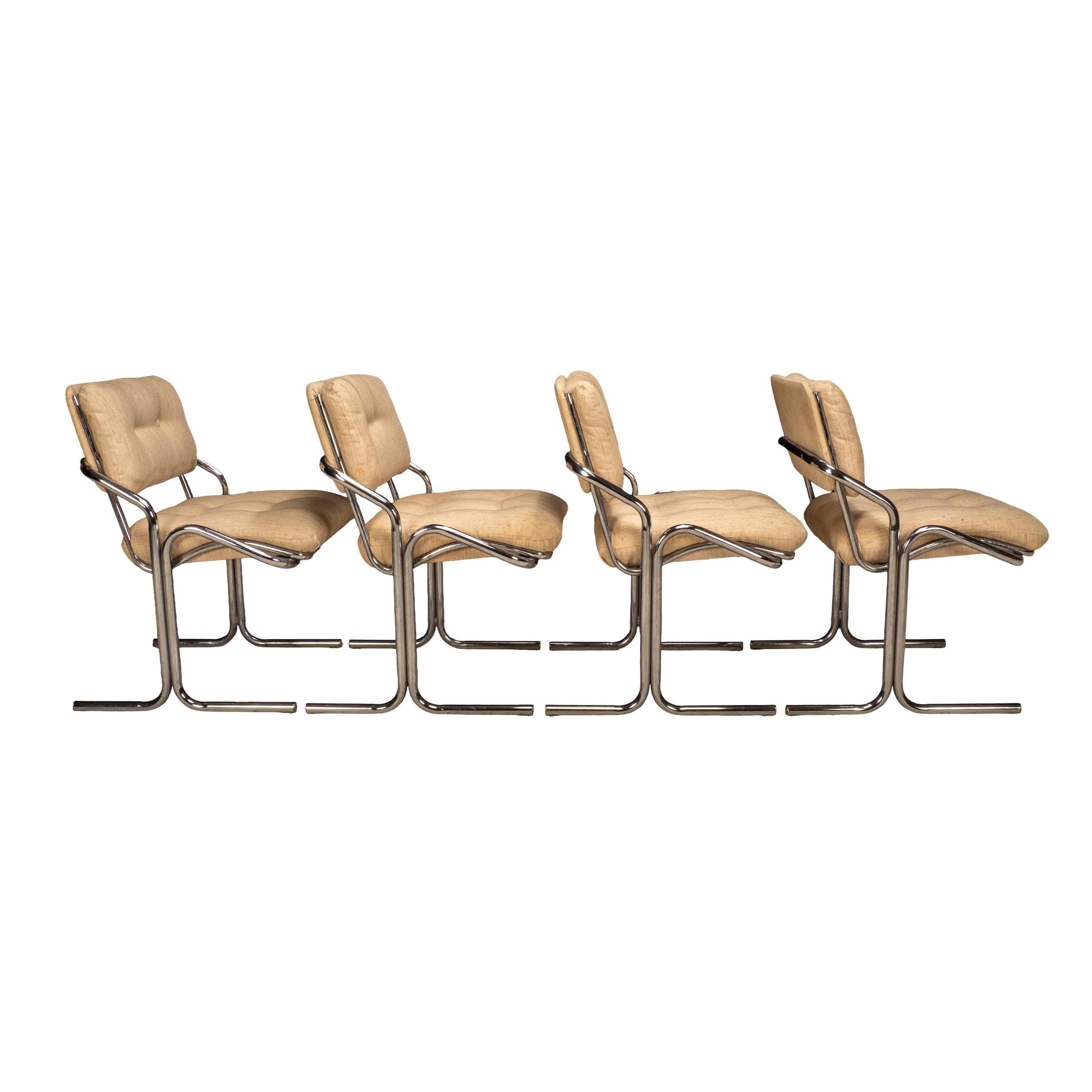 1970s Jerry Johnson Arcadia Cantilever Tubular Dining Chairs, Set of 4 – Chrome Retro Modern