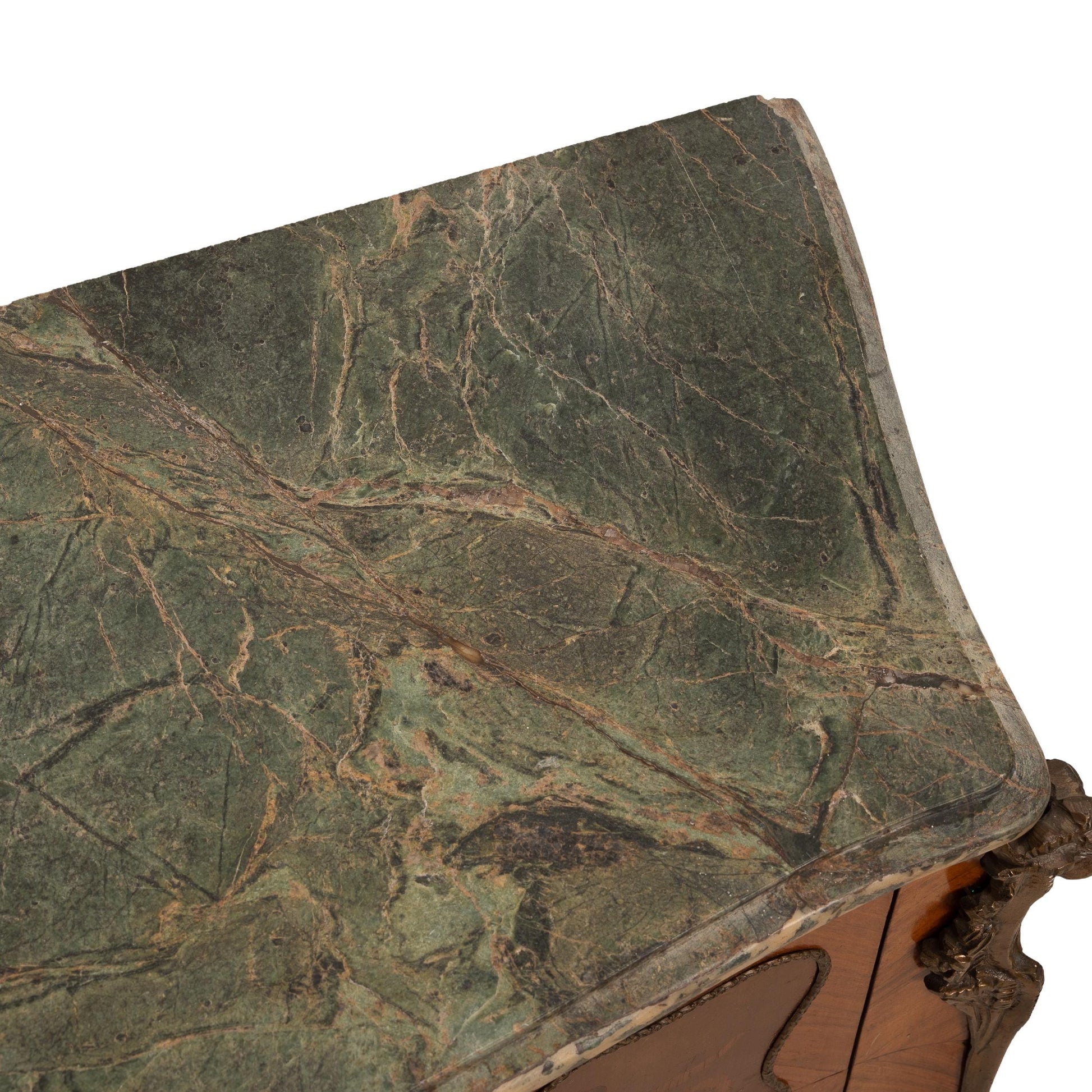 Antique French Louis XV Style Commode W/ Green Marble Top & Marquetry Inlay