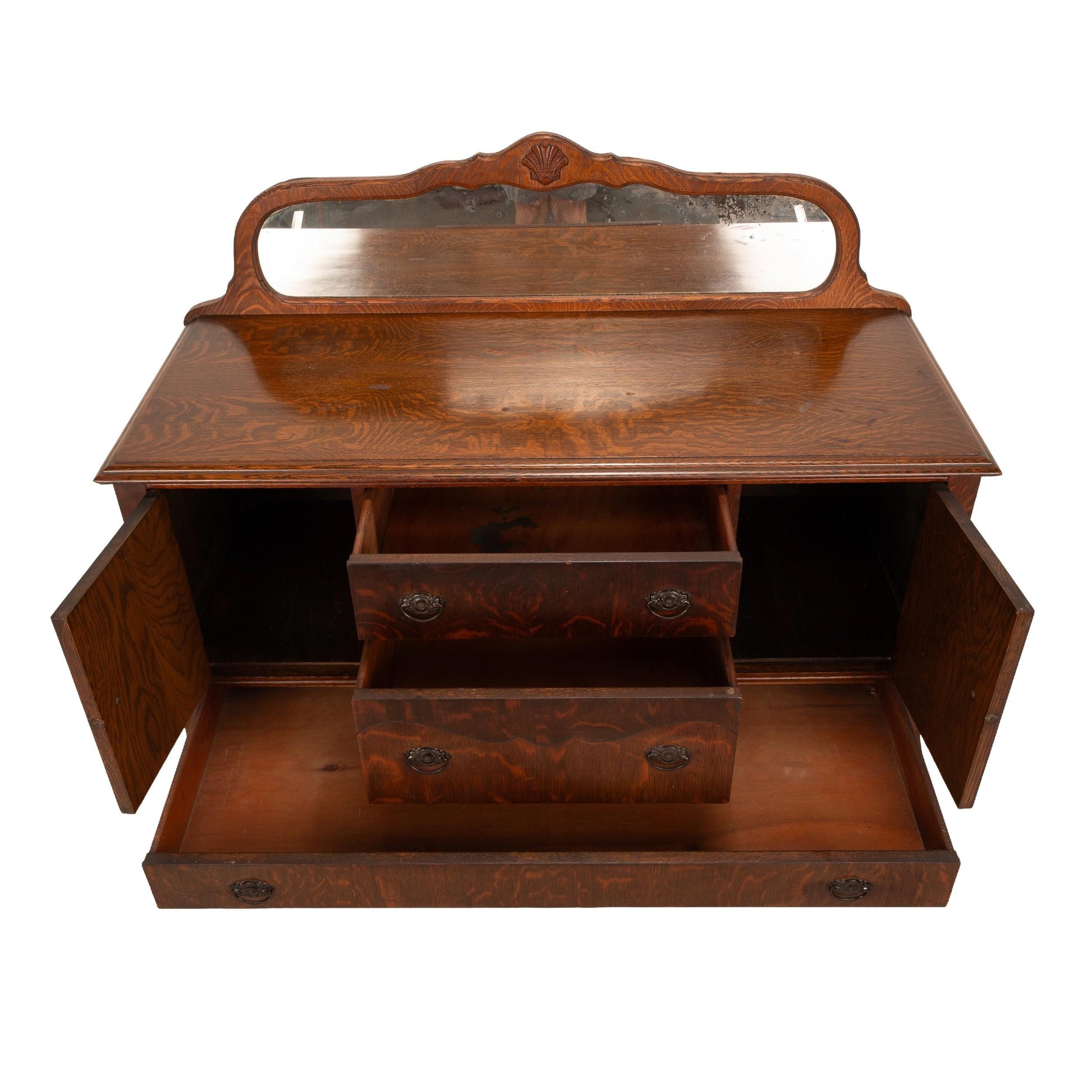Antique Tiger Oak Carved Sideboard Buffet W/ Original Beveled Mirror & Shell Details