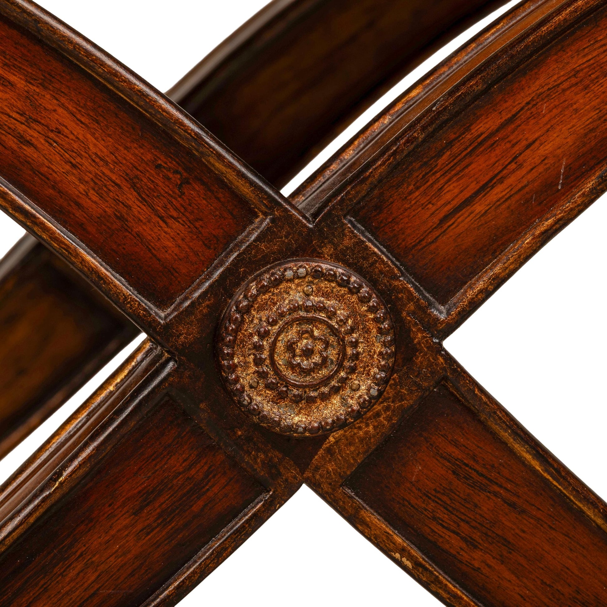 A classic and beautifully crafted pair of Ethan Allen low stools featuring elegant carved X-base frames and upholstered tops in a warm houndstooth fabric. These stools bring a refined traditional touch to any space—perfect as fireside seats, bedroom accents, vanity stools, or small ottomans in a living area.
