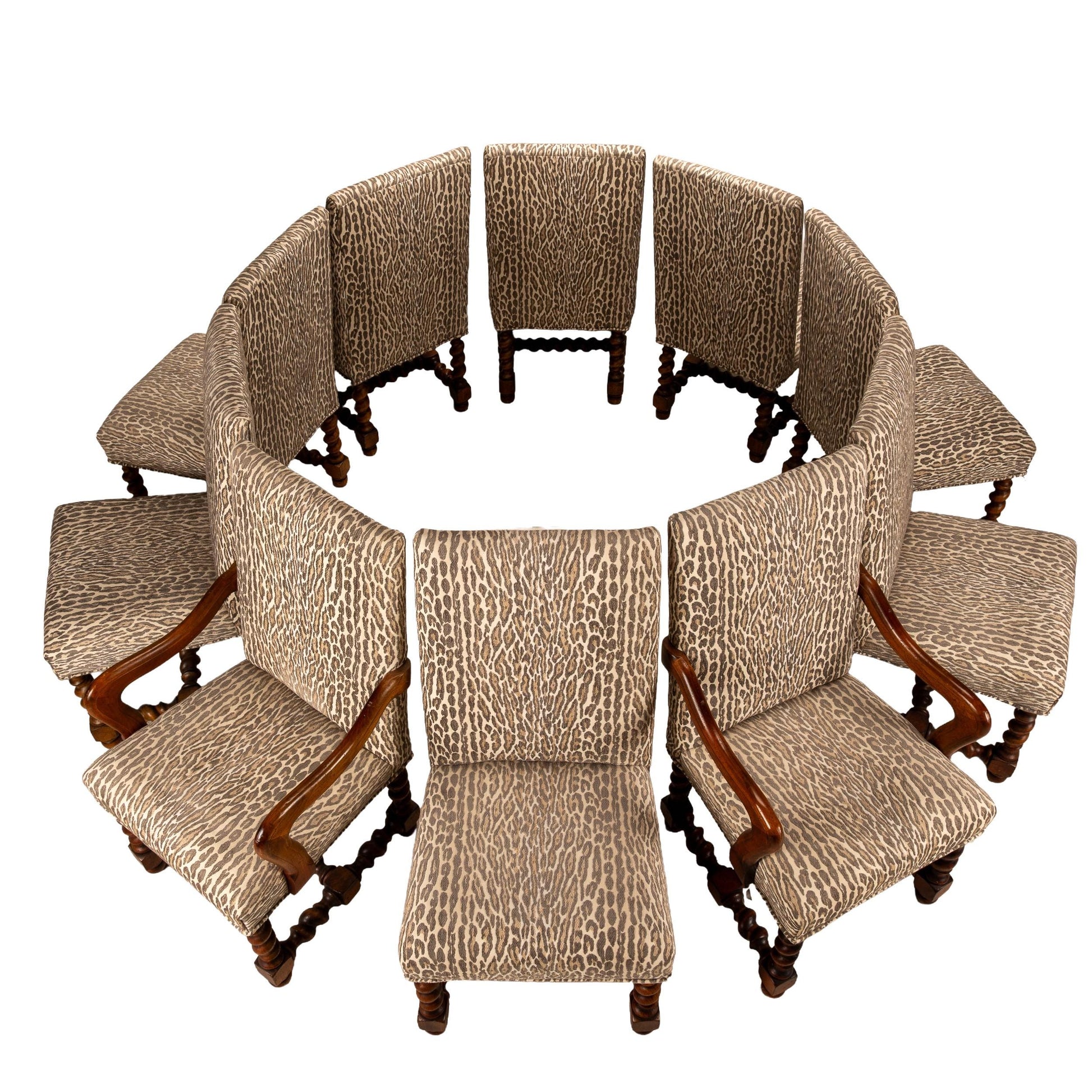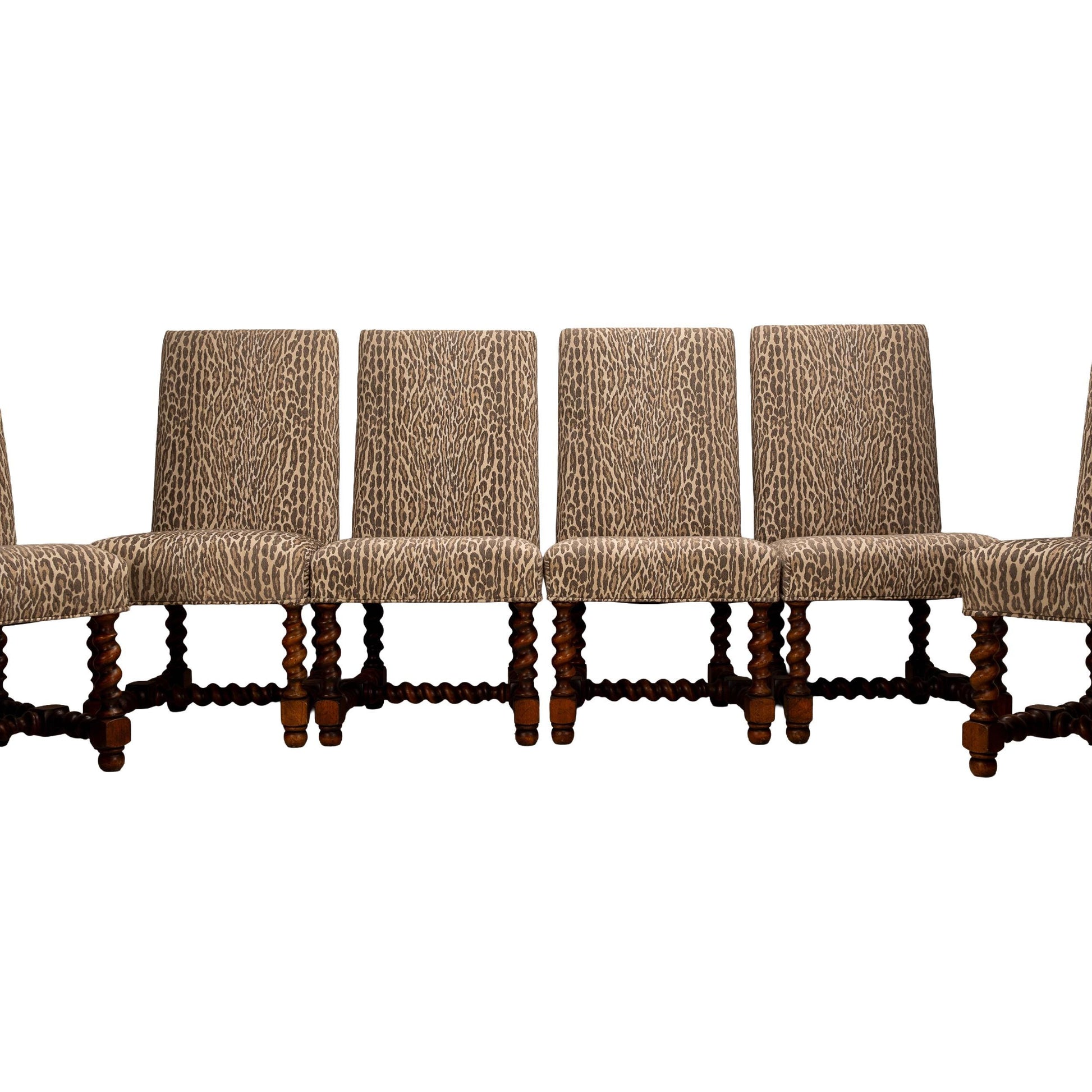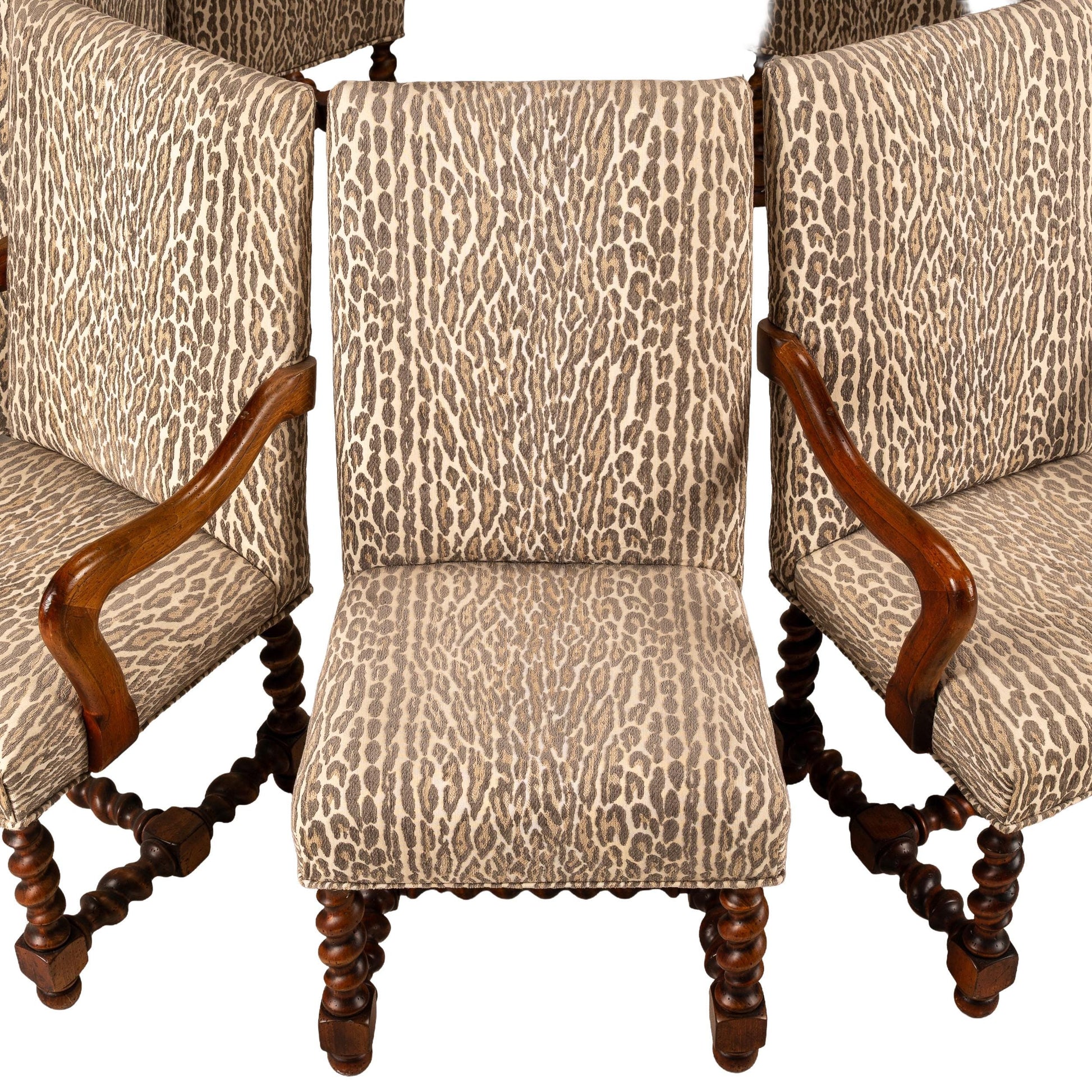 Jacobean Style Barley Twist Dining Chairs in Leopard Print Upholstery – Set of 10